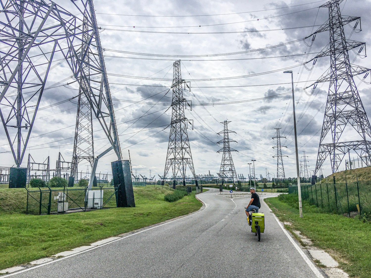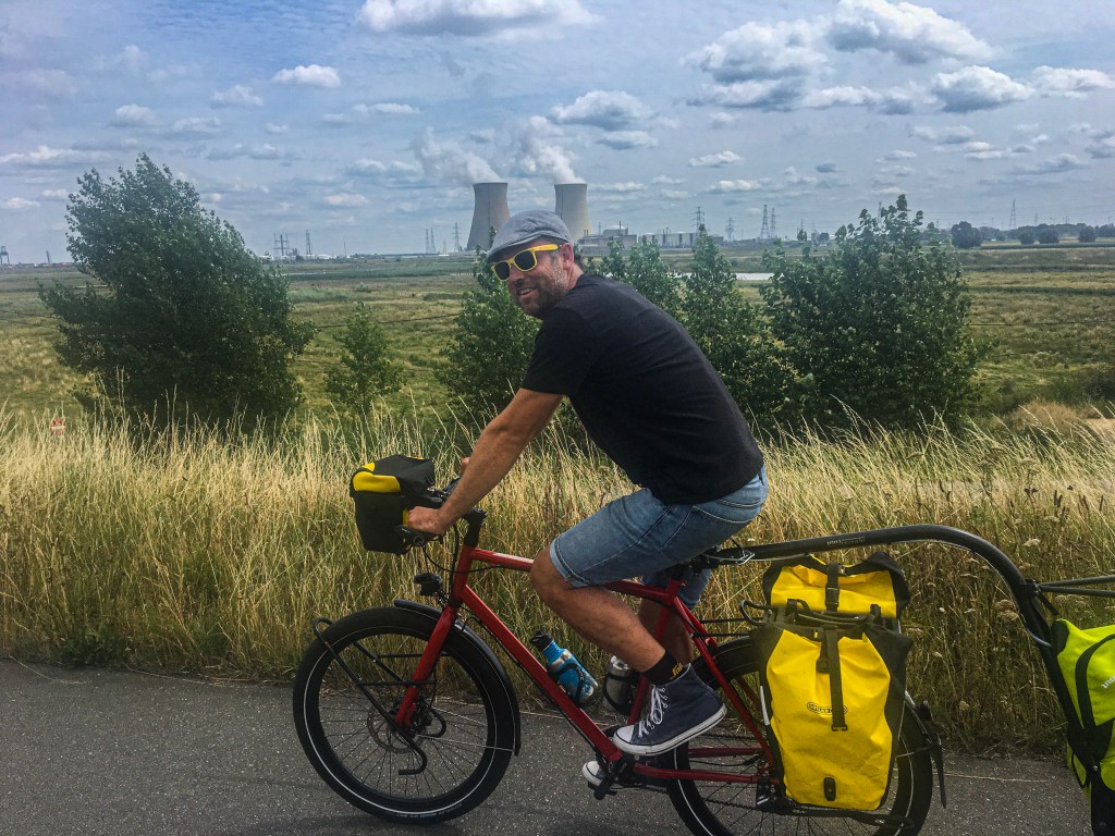 Je fietst langs boomgaarden, de velden met strobalen, langs de grote brute haven met containers die elke mensenmaat overstijgt. En altijd altijd is de kerncentrale in zicht.