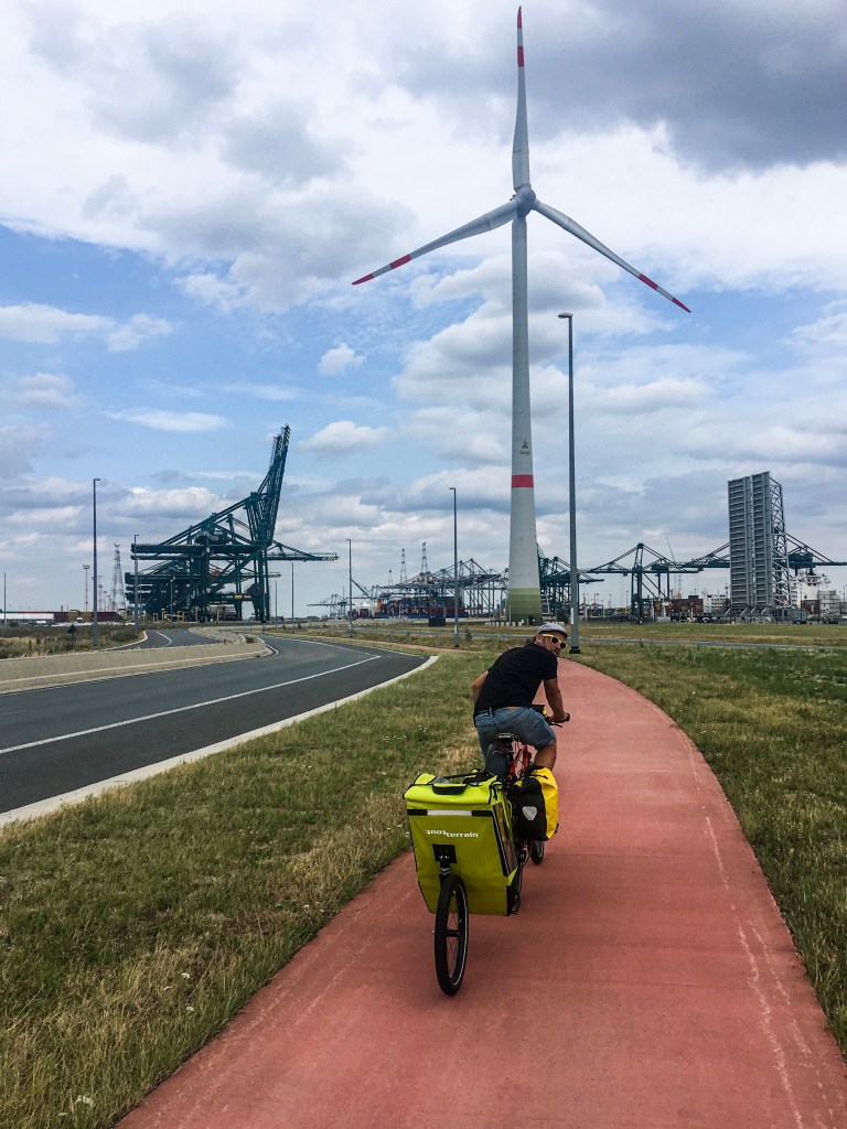 We wilden al lang eens fietsen in de Haven van Antwerpen, toen de kinderen op scoutskamp waren was het moment daar.