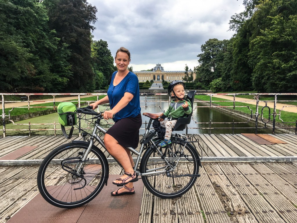 De route loopt grotendeels door het Zoniënwoud, waar het erg rustig was. De paadjes zijn soms hobbelig en modderig, wat voor onze fietsen en de singletrailer geen enkel probleem was. Je fietst door het park van Tervuren zo voorbij het Afrikamuseum.