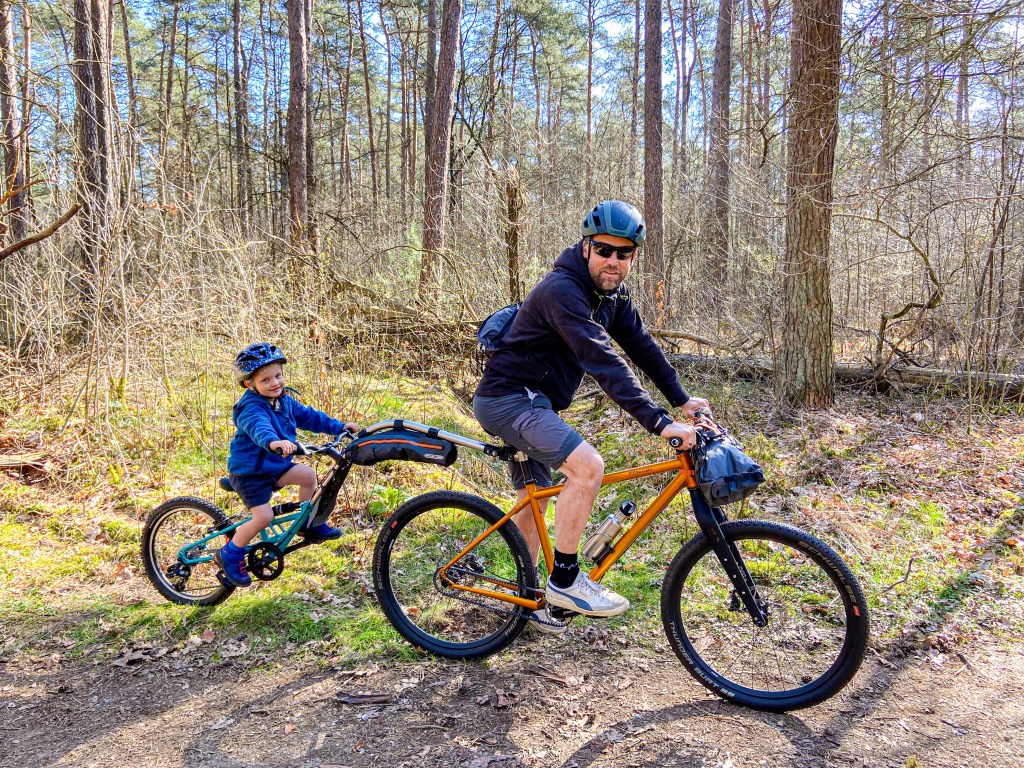 De Streamliner deed goed dienst, geveerd en stabiel als een tank sjeesde Rocco achter zijn papa aan op de slingerende singletracks.