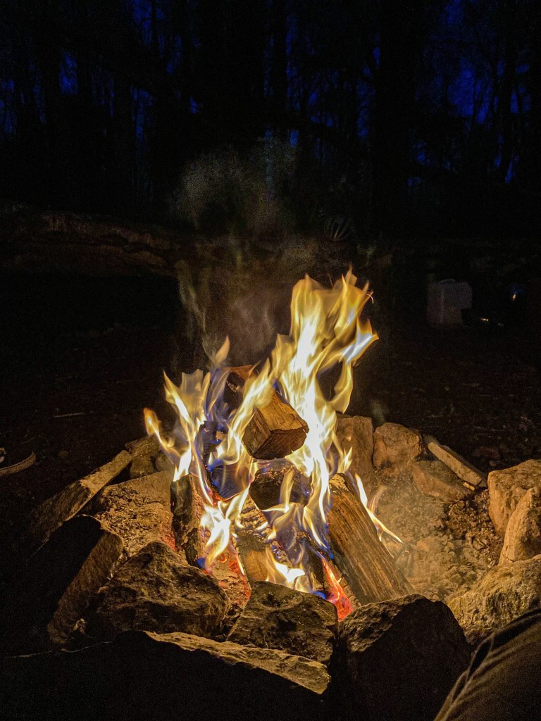 Eenmaal aangekomen aan ons kampement werd er gekookt en ging het kampvuur aan.