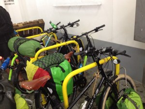 - Spanbanden: als je met de trein of de ferry reist kan het handig zijn om zelf spanbanden mee te nemen om de fietsen vast te maken. Meestal zijn er wel riemen of touwen voorzien, maar dan voor 1 of 2 fietsen. In de ferry van Duinkerke naar Dover waren er best wel wat fietshekjes en hadden we ze niet nodig, maar in de ferry van Newhaven naar Dieppe wel. En onderweg gebruikten we ze als wasdraad, handig!